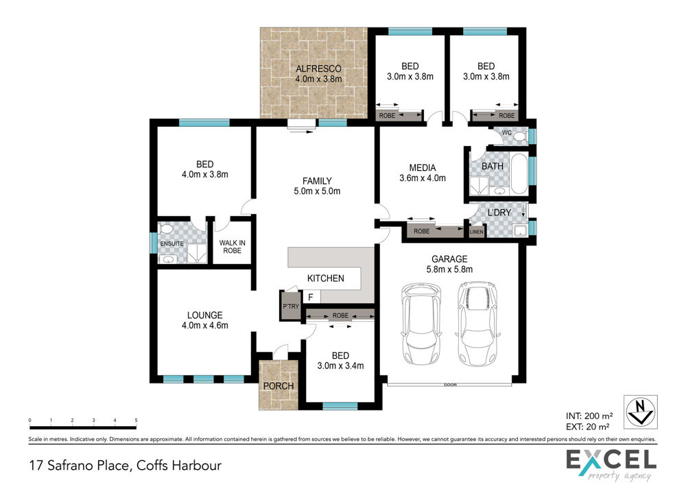 The master suite offers a walk in robe complete with an ensuite, while the remaining three bedrooms are generously sized with built in robes and served by a modern family bathroom.