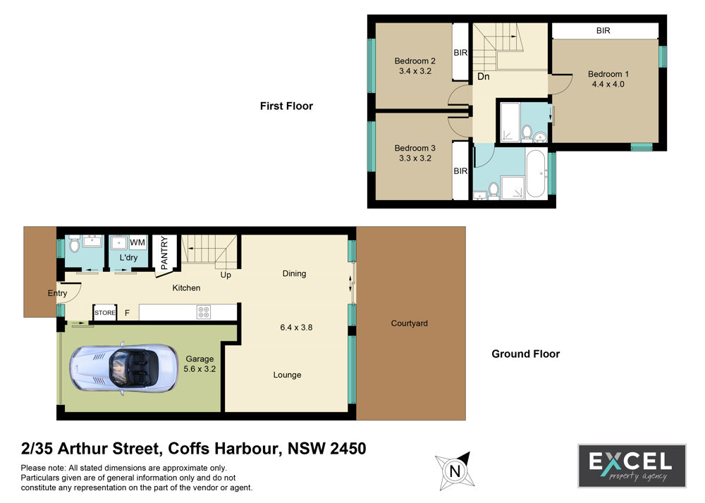 Upstairs is much bigger than you think! Three excellent bedrooms and two bathrooms. The large main bedroom has an ensuite and a wall of storage, also interesting glass and louvres for light and air-flow, plus ceiling fan for those hot nights.