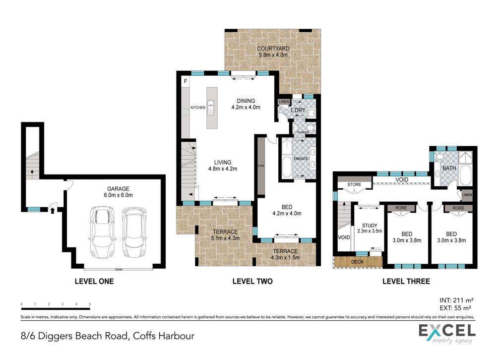 The living space itself is approx.270m2 and transitions effortlessly to each level. Flowing perfectly onto the tiled terrace, courtyard, and balcony, this property displays modern interiors and lovely high 2.7m(9ft) ceilings.